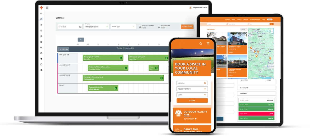 Designed for organisations including schools, local authorities, multi academy trusts, community halls, sports pitches and more, our software is totally scalable, offering a solution for spaces for hire located on one single site, as well as where there are multiple spaces for hire across multiple sites.